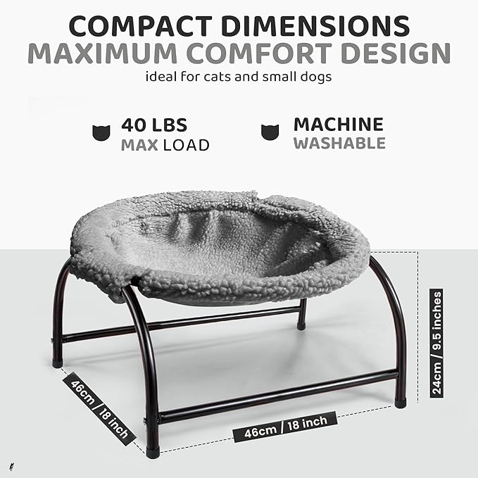 - Durable & Easy Cleaning - Even with your cat's daily jumping in and out of this cat hammock outdoor or indoor, it will remain safe and stable and will not scuff or damage your floors. Cleaning the cat or doggie hammock is quick and easy. Simply loosen the screws, remove the bedding, machine wash and air dry. Dimensions are 18 in x 18 in x 9.5 in. Your satisfaction is guaranteed.