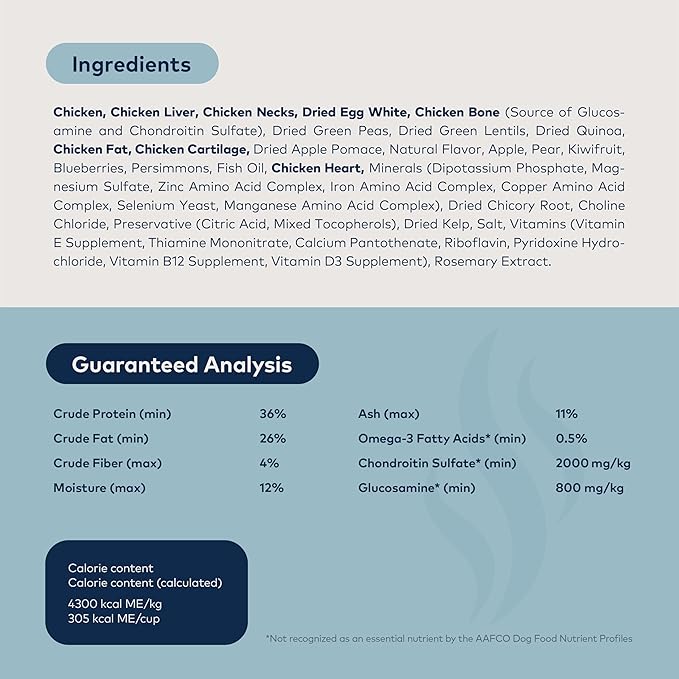 - 85% PREMIUM MEATS: Single protein recipe with ethically sourced animal ingredients including raw high protein cage-free Chicken, organs and ground bone to meet the needs of a dog's whole prey diet.
