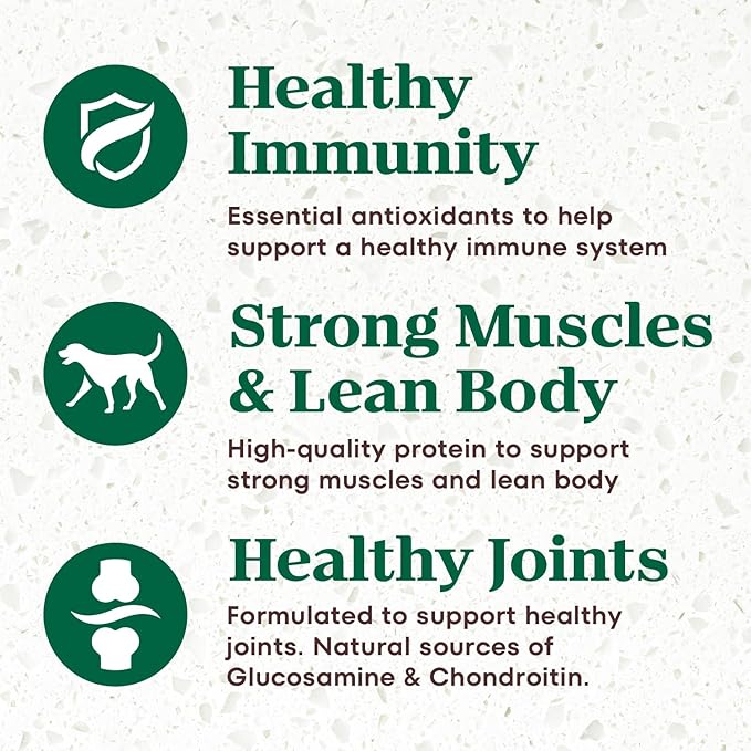 - High-quality Protein: With real chicken as the #1 ingredient and high-quality protein from chicken sources, this dry dog food recipe supports strong muscles, a lean body, and serves delicious flavor that dogs beg for.
