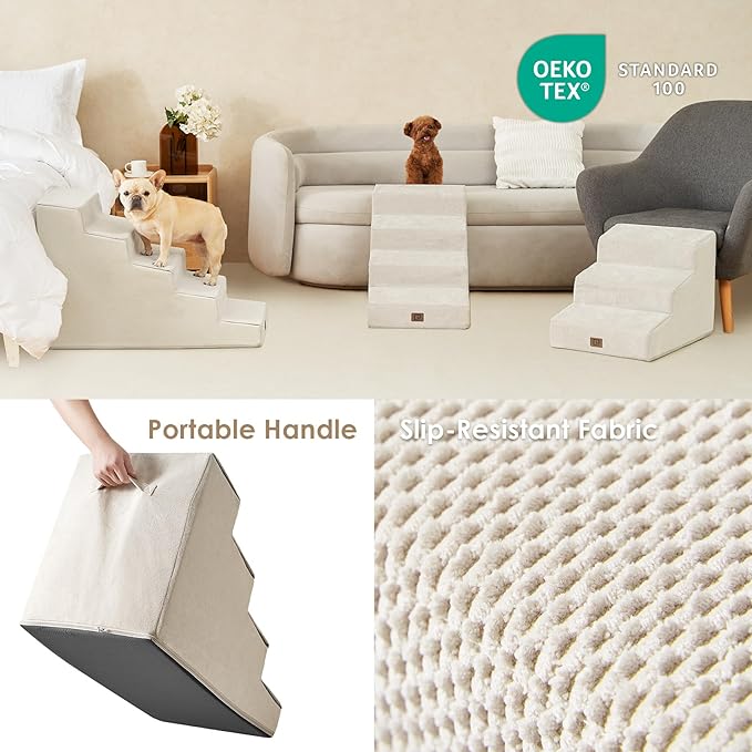 EHEYCIGA Dog Stairs for Beds 19.7" H, 4-Step Dog Steps for Small Dogs and Cats, Slope Pet Steps with Non-Slip Bottom, Beige