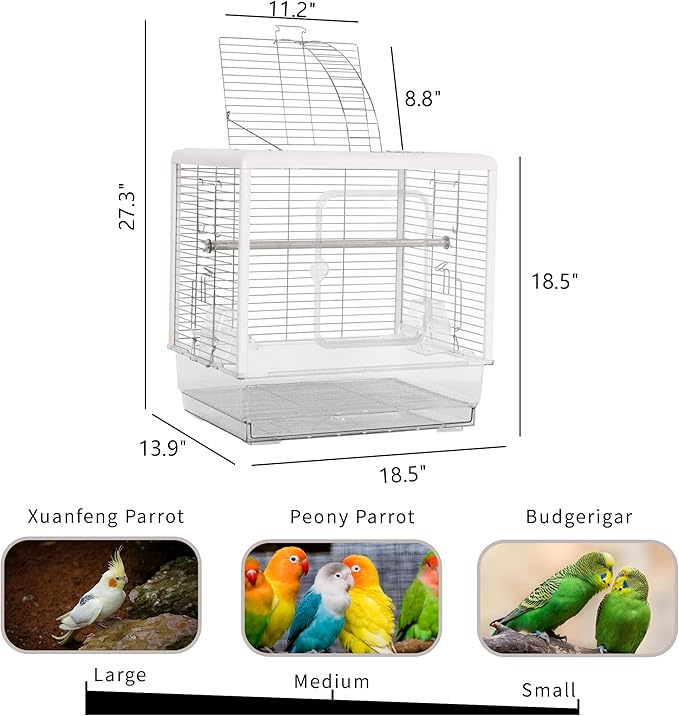 Bird Cage 27-inch Inch Wrought Iron Parrot Cage Acrylic See-Through Standing Flight Parakeet Cage for Cockatiels Cheek Conure Lovebird Budgie Finch Canary