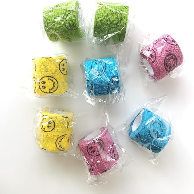 Smiley Face Self Adhesive Bandage Wrap Animal Cohesive Bandage Self Adherent Wrap First Aid Tape for Dogs Cats Horses Birds & Wrist Healing Ankle Sprain 8 Rolls, 2 Inch