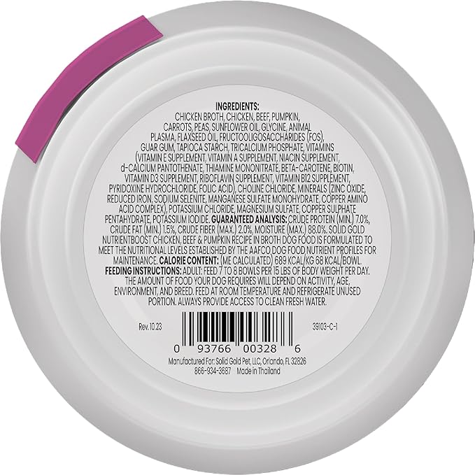 Solid Gold WET FUNCTIONAL DOG, DIGESTIVE, CHICKEN, BEEF & PUMPKIN, 3.5oz Pack of 6