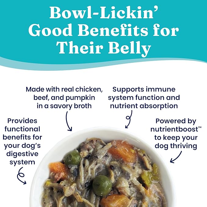 - Real Chicken Recipe - Includes chicken, beef, and pumpkin in a savory broth to give your pet a source of protein and a boost of flavor, along with additional vitamins, minerals, and superfoods