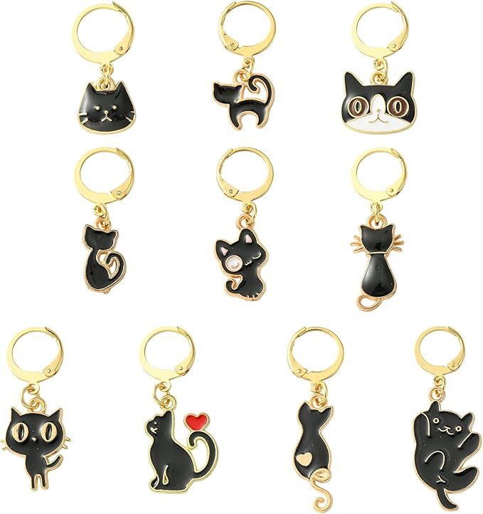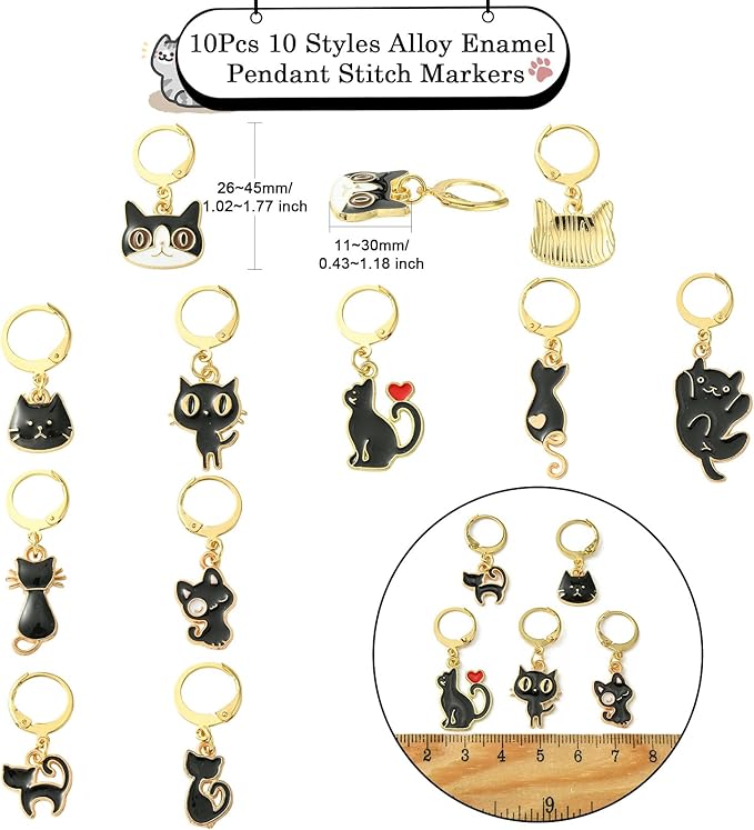 - 😊Quantity and Size: You will receive 10pcs enamel black cat stitch markers in total. Each stitch marker is about 26~45mm in length, charm is about 11~30mm in length. (1 inch = 25.4mm or 1mm = 0.0393 inch).
