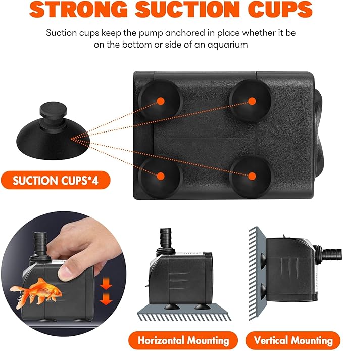 - Easy to Use: The pump is easy to install and operate, and its submersible design allows for discreet placement in your fish tank, pond, or hydroponic setup. It also requires minimal maintenance, providing hassle-free operation for your aquatic needs.